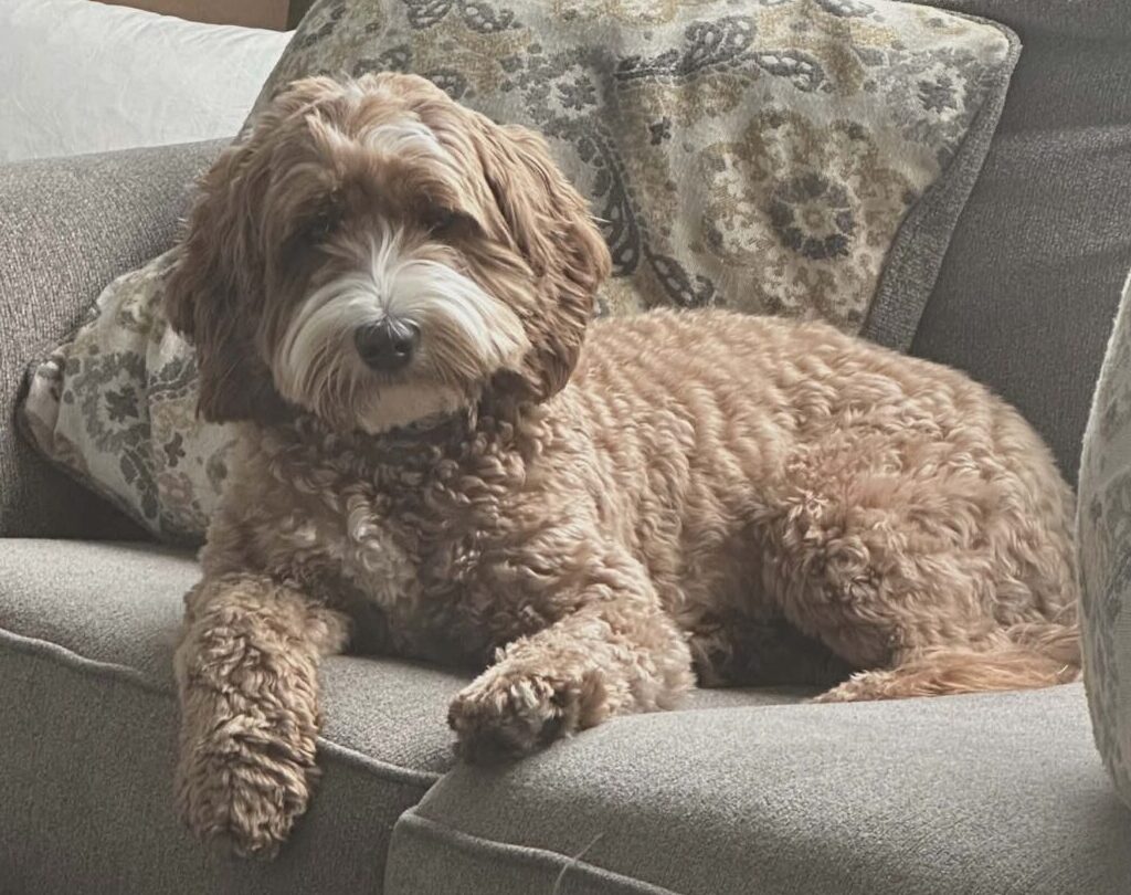 Testings: IC clear, DM clear, EIC clear, PRA/prcd clear, VWB clear, Patellas normal, Heart normal, OFA eyes normal, OFA hips-fair elb-neg for dysplasia. Sire –Sacto Labradoodles Reggie Dam – Jubilee Brandy. ALAA reg# 131431.